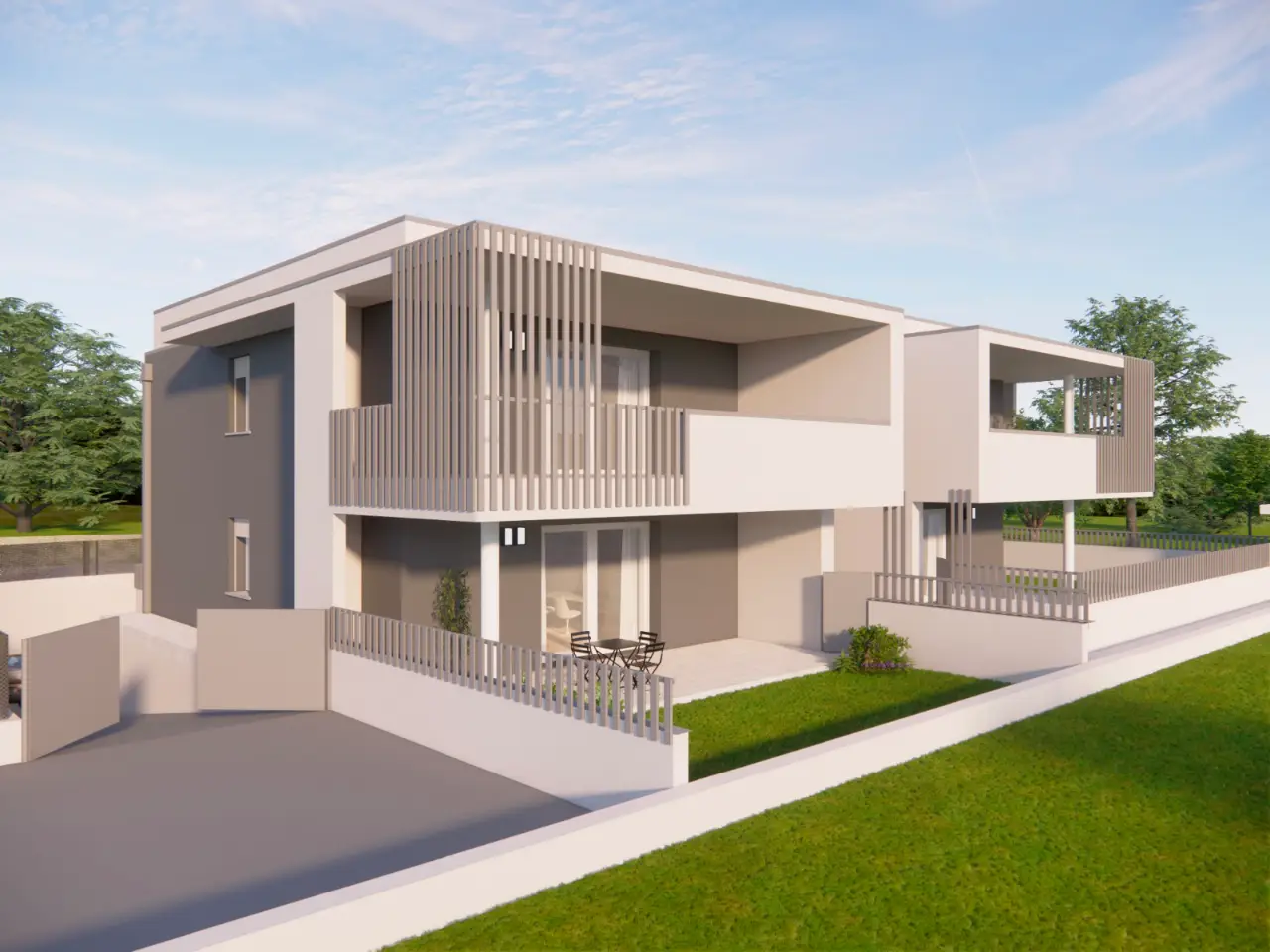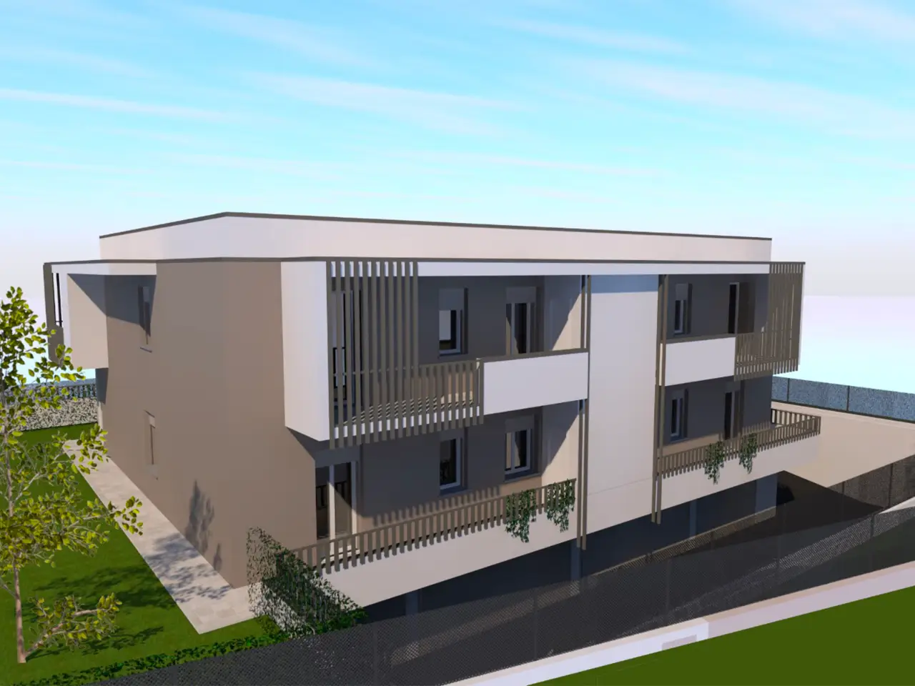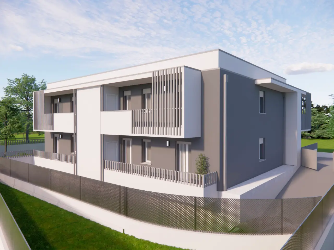 A Montichiari, in elegante contesto residenziale a pochi passi dal centro, proponiamo in vendita moderno quadrilocale di nuova costruzione situato al primo piano e realizzato in classe energetica A4, ideale per chi desidera comfort, efficienza e qualità abitativa. L’immobile si sviluppa su una superficie commerciale di circa 143 mq e offre ambienti ampi, luminosi e ben distribuiti. La zona giorno, caratterizzata da un living con cucina a vista, si affaccia direttamente su un ampio terrazzo coperto di oltre 30 mq, perfetto per pranzi all’aperto e momenti di relax. La zona notte comprende tre camere da letto, tra cui una matrimoniale con balcone e predisposizione per bagno privato, oltre a due ulteriori camere anch’esse servite da balcone, e due bagni completi con spazio dedicato alla lavanderia. Completa la proprietà un box auto doppio al piano interrato con apertura motorizzata. L’abitazione è completamente gas-free e dotata di impianto fotovoltaico da 3 kW, pompa di calore, riscaldamento a pavimento e climatizzazione caldo/freddo, garantendo elevate prestazioni energetiche e consumi ridotti. Predisposizione per domotica, videocitofono e tapparelle elettriche rendono questa soluzione ideale per chi cerca una casa moderna e tecnologica, con consegna prevista primavera 2027.